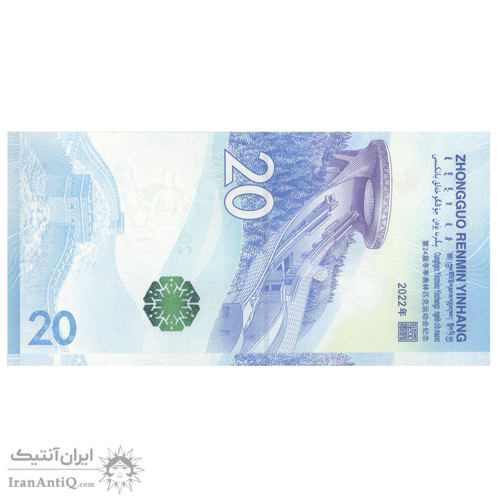 اسکناس 20 یوآن 2022 جمهوری خلق - المپیک زمستانی پکن - تک - UNC65 - چین (ژونگوئو)