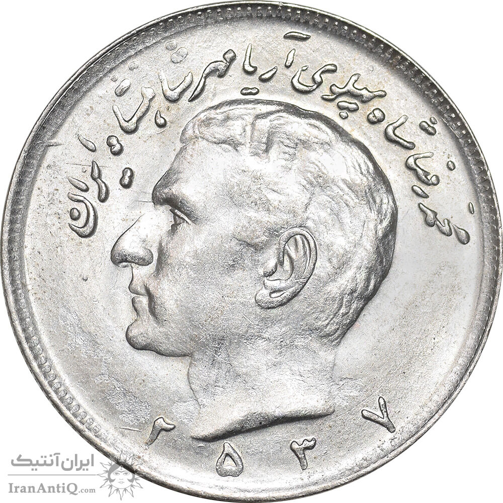 سکه 20 ریال 2537 - MS63 - محمد رضا شاه