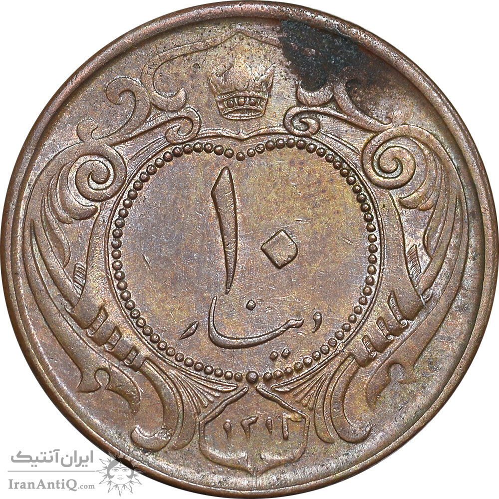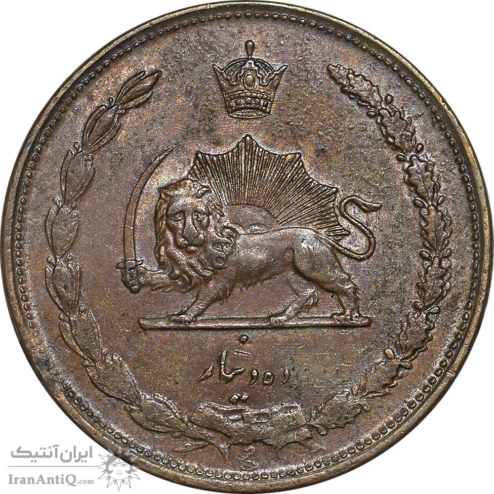 سکه 10 دینار 1314 مس - AU55 - رضا شاه