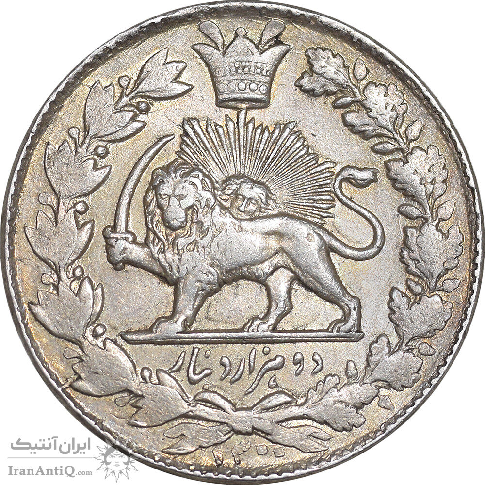 Iran 2000 dinars 1300 coin - AU58 - naser aldin shah