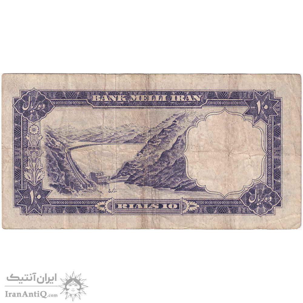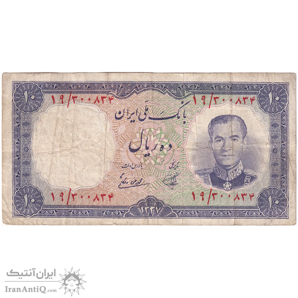 اسکناس 10 ریال 1337 - تک - VF35 - محمد رضا شاه