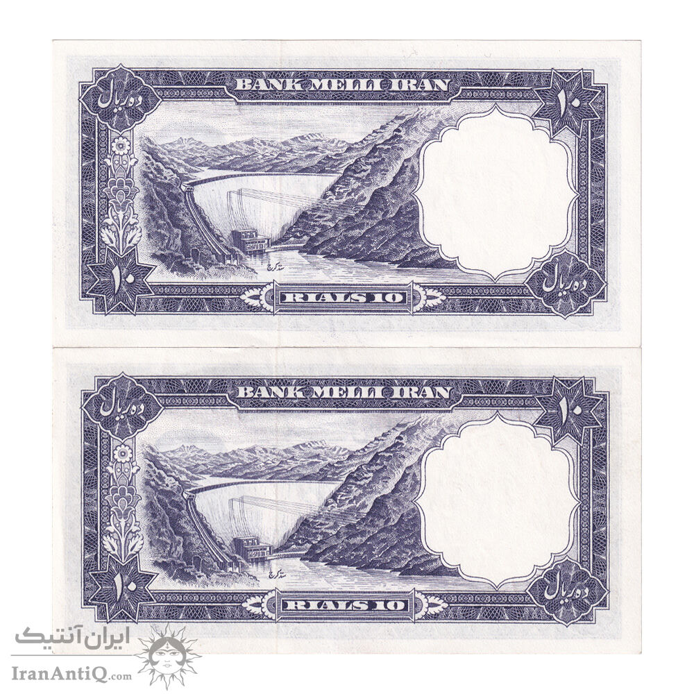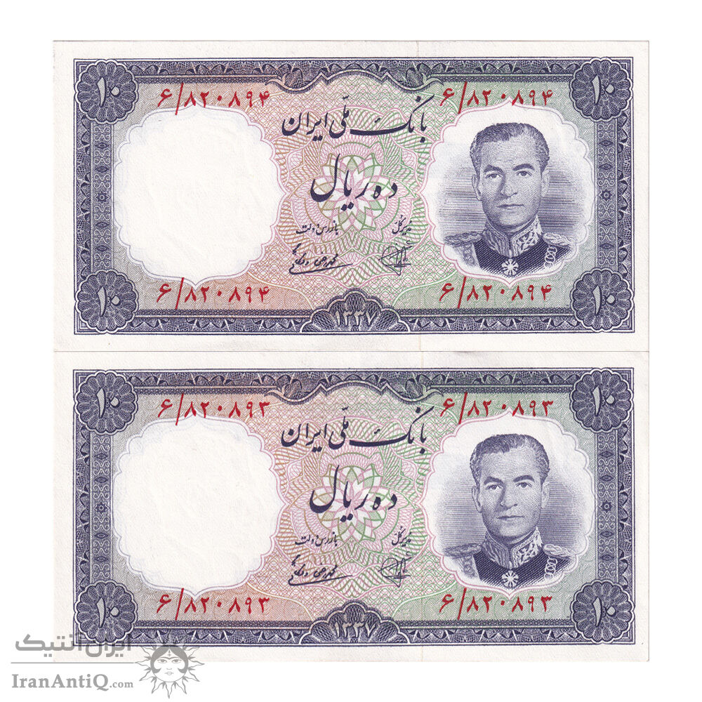 اسکناس 10 ریال 1337 - جفت - UNC61 - محمد رضا شاه