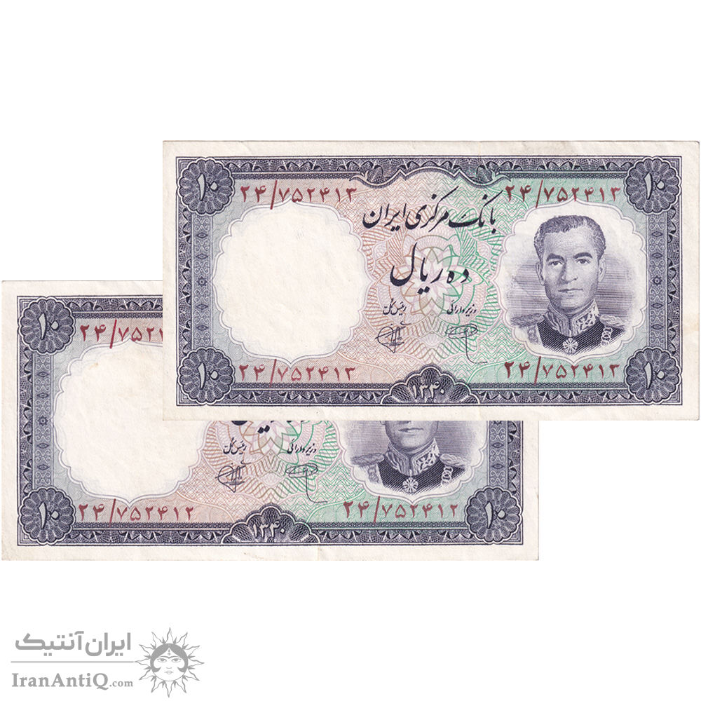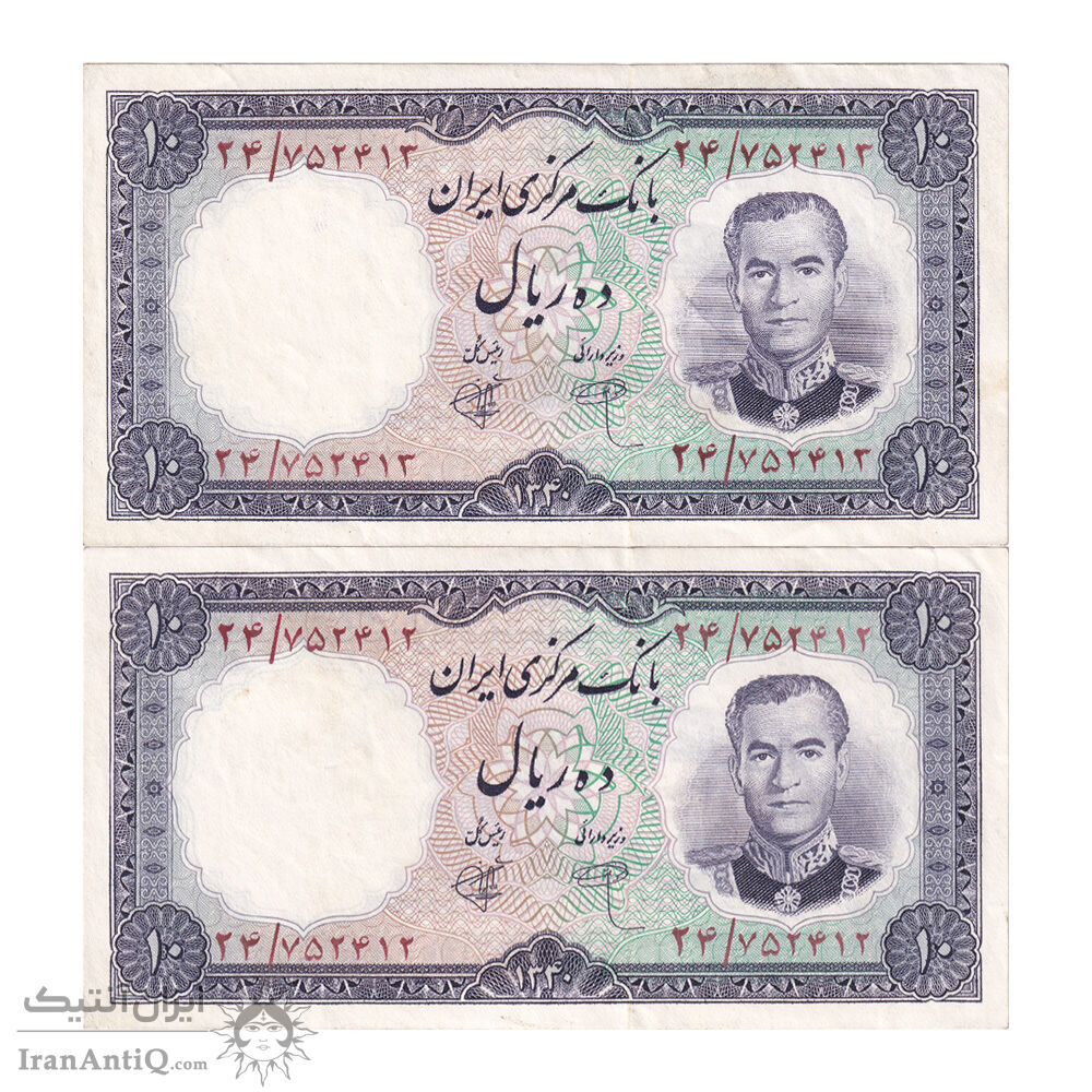 اسکناس 10 ریال 1340 - جفت - AU58 - محمد رضا شاه