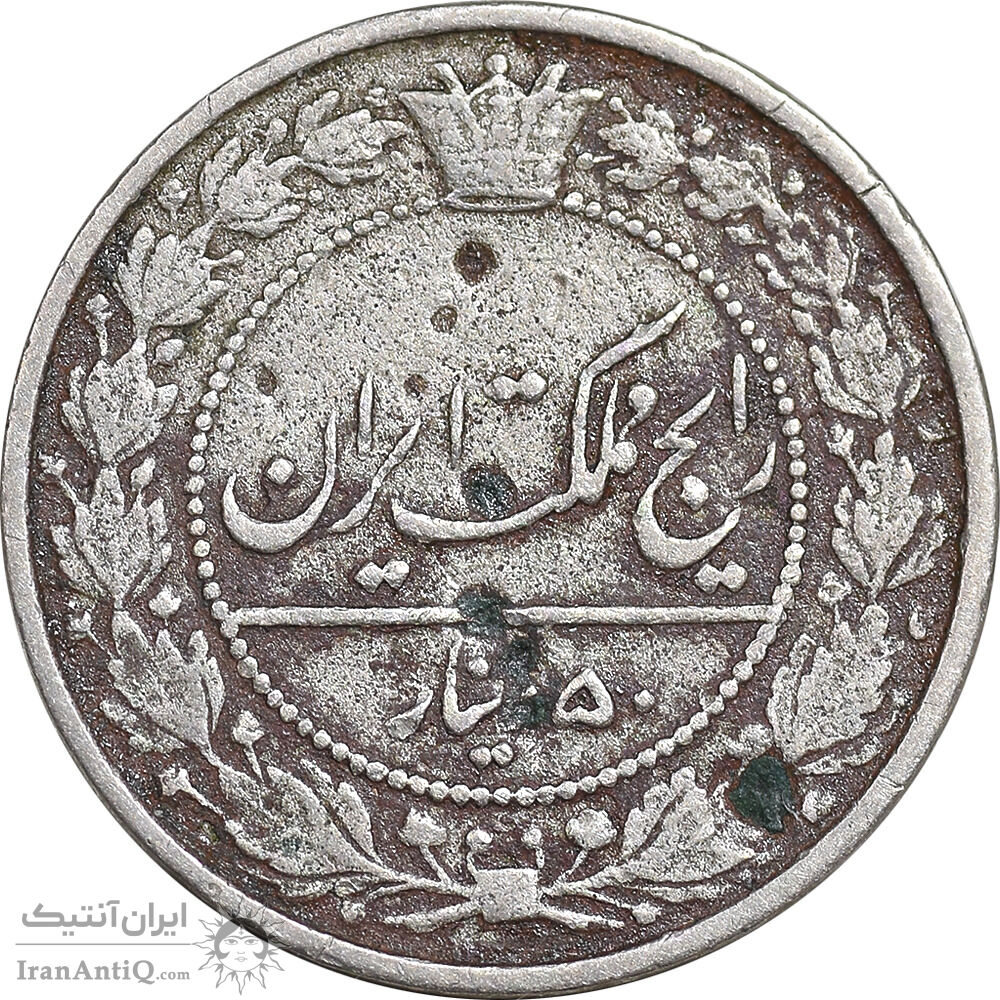 سکه 50 دینار 1318 نیکل - VF35 - مظفرالدین شاه