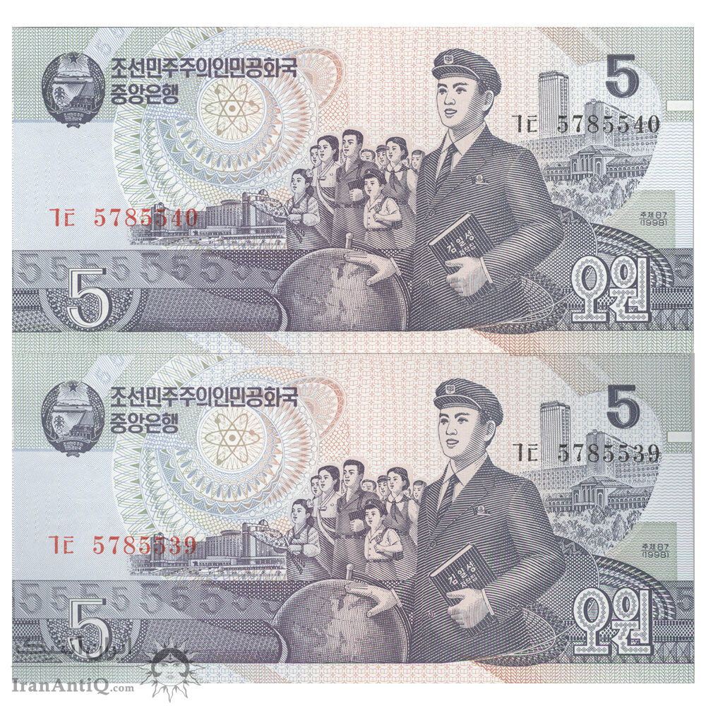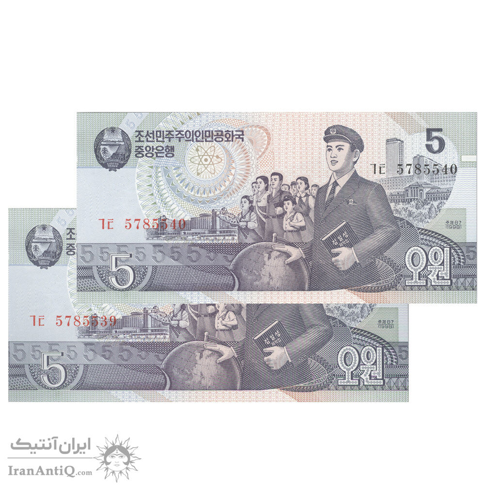 اسکناس 5 وون 1998 جمهوری دموکراتیک خلق - جفت - UNC66 - کره شمالی