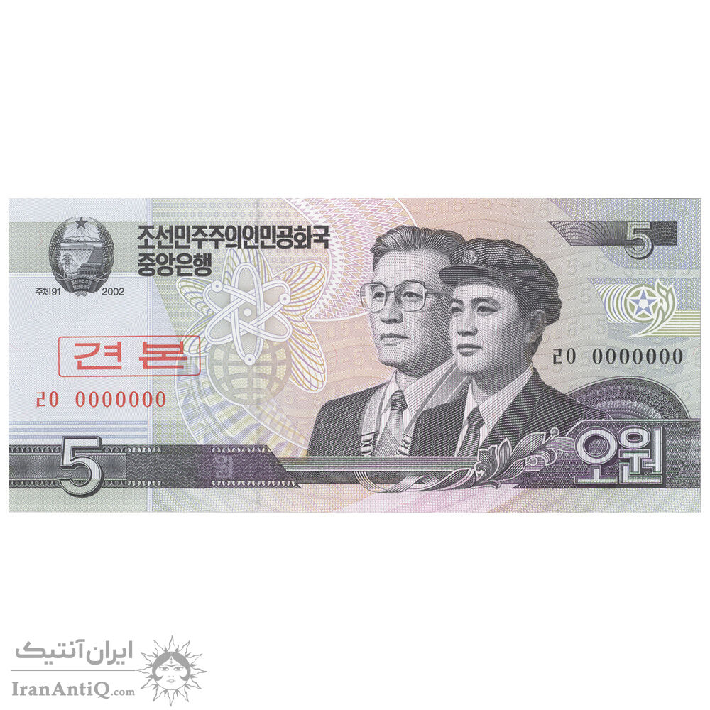 اسکناس 5 وون 2002 جمهوری دموکراتیک خلق - Specimen - تک - UNC66 - کره شمالی