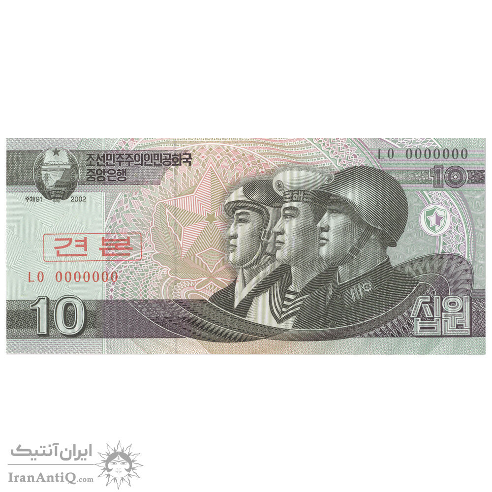 اسکناس 10 وون 2002 جمهوری دموکراتیک خلق - Specimen - تک - UNC64 - کره شمالی