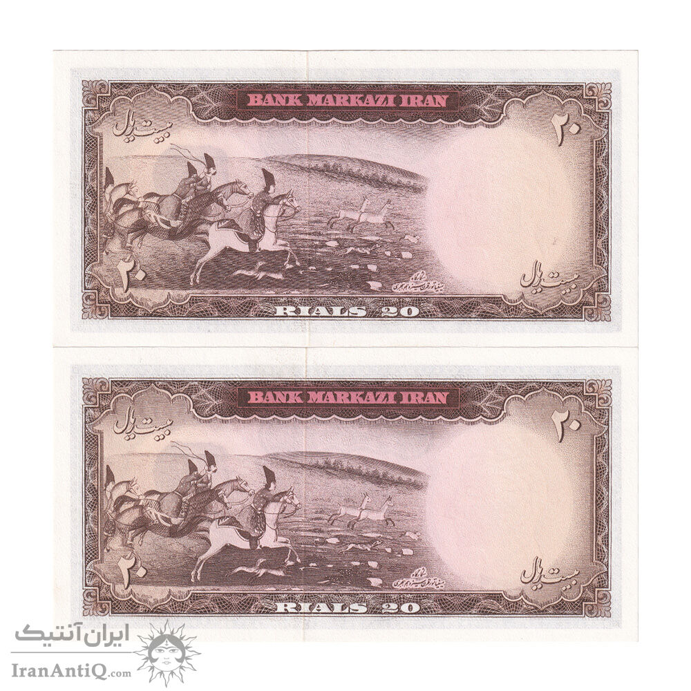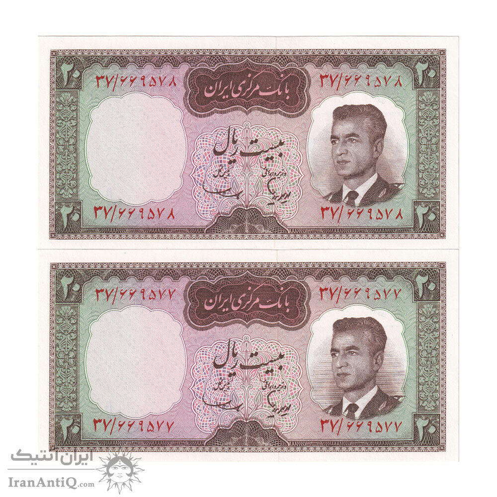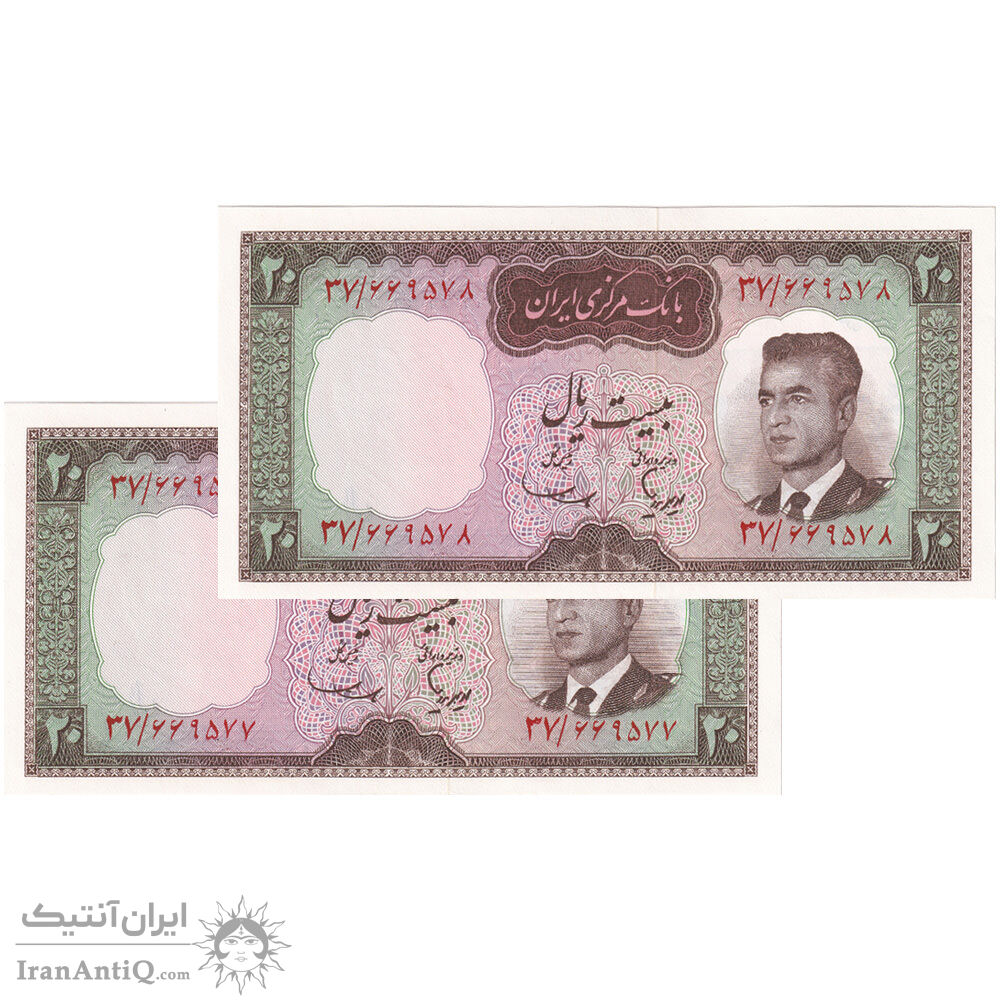 اسکناس 20 ریال (هویدا - سمیعی) - جفت - UNC64 - محمد رضا شاه
