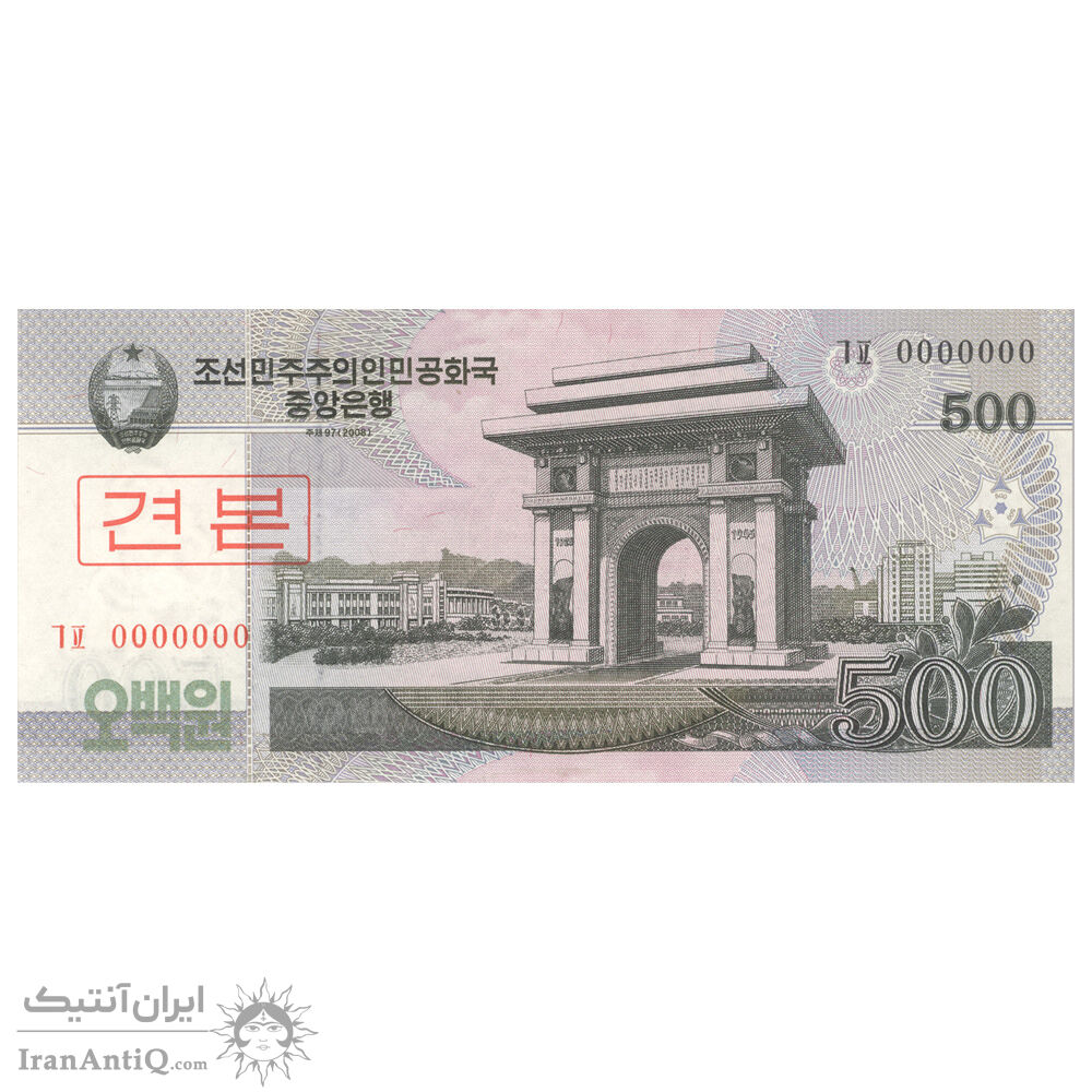 North Korea 500 Won 2008 banknote - Specimen - UNC66 - Democratic People's Republic