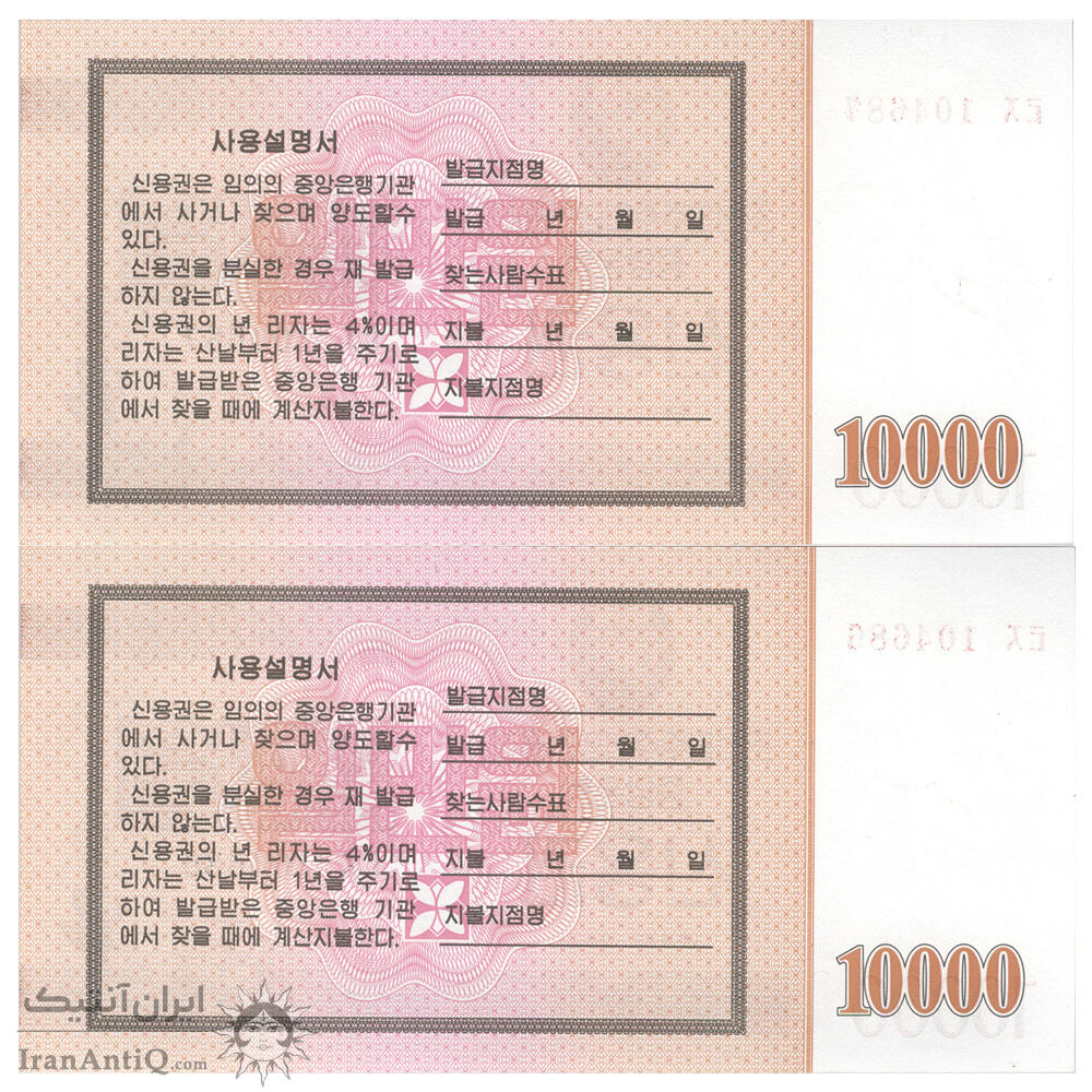 اسکناس 10000 وون 2003 جمهوری دموکراتیک خلق - اوراق قرضه پس انداز - جفت - UNC65 - کره شمالی