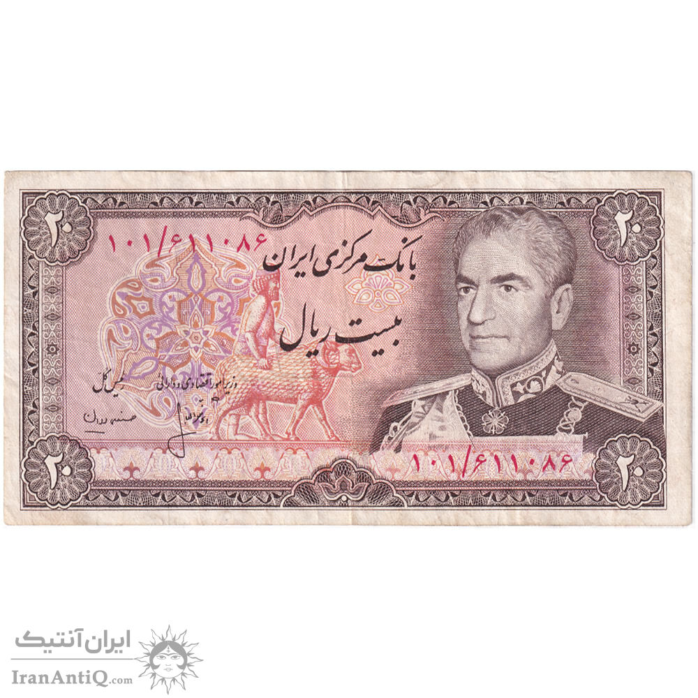 mohammad reza shah 20 rials (ansari - mehran) iran banknote - VF35