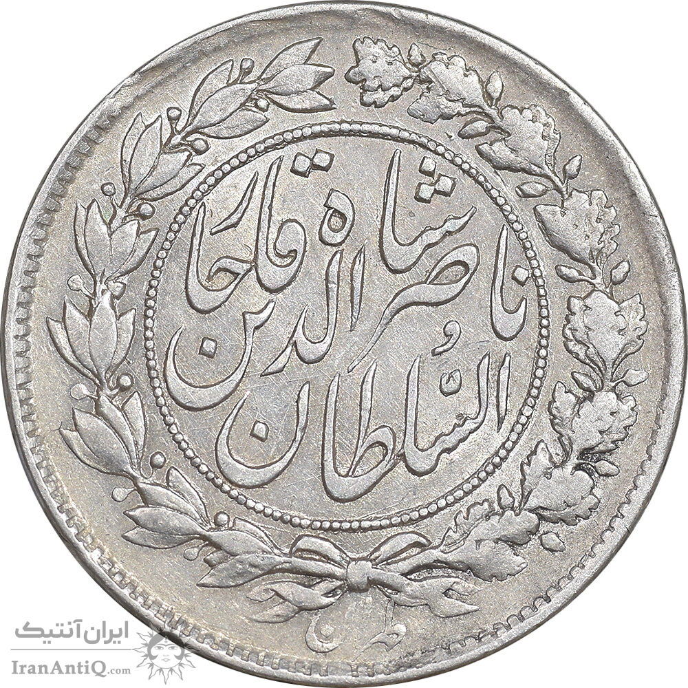 Iran 1000 dinars 1297 coin - rotate 90 degree - AU55 - naser aldin shah