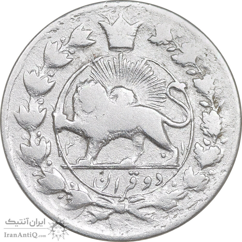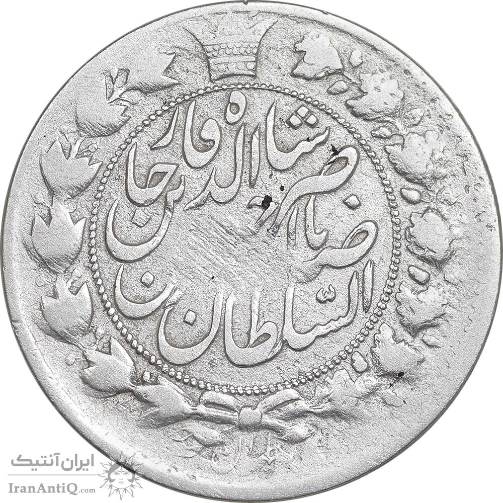 سکه 2 قران 1301 ارور تاریخ و قالب - VF25 - ناصرالدین شاه
