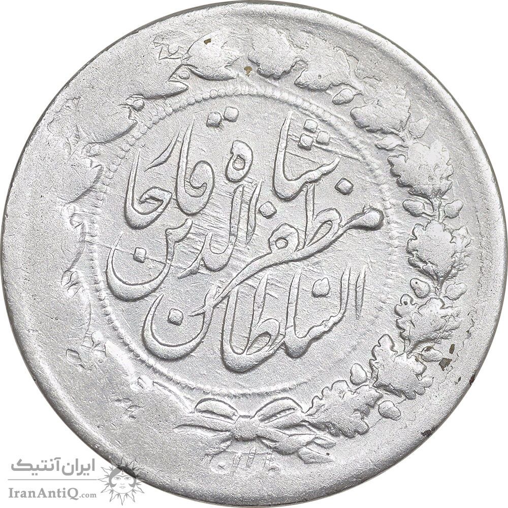 سکه 2000 دینار 1314 خطی - یک تاج - VF35 - مظفرالدین شاه