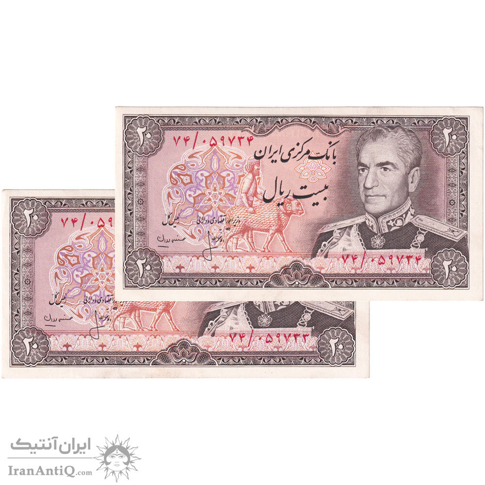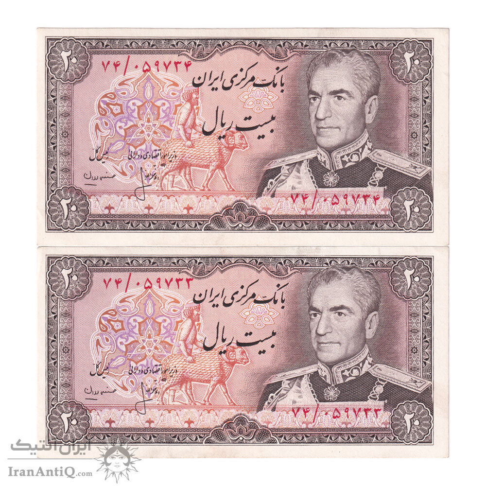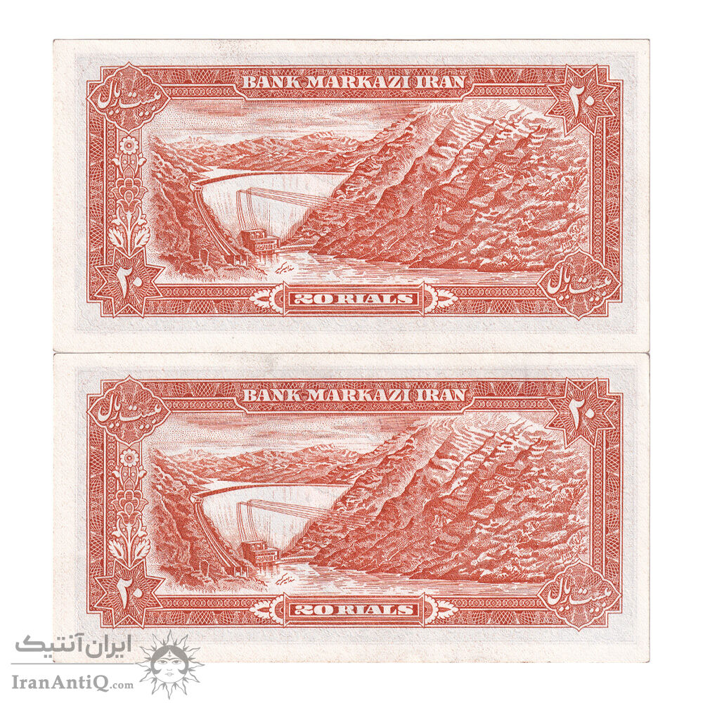 اسکناس 20 ریال (انصاری - مهران) ریال باز - جفت - UNC61 - محمد رضا شاه