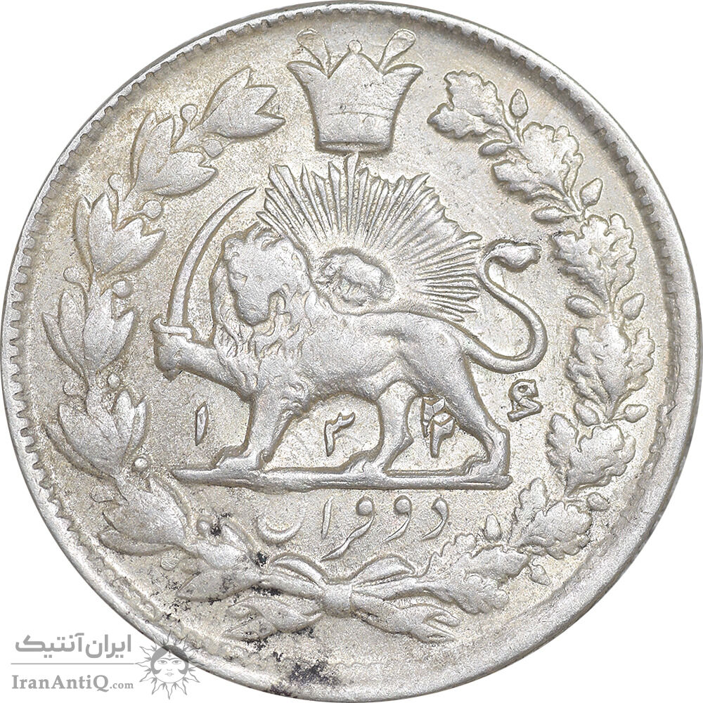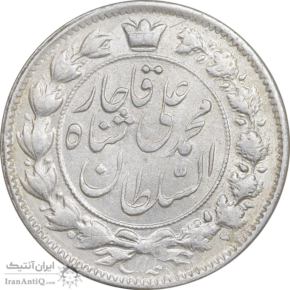iran 2 krans 1326/22 coin - date surcharge - AU55 - Mohammad ali shah