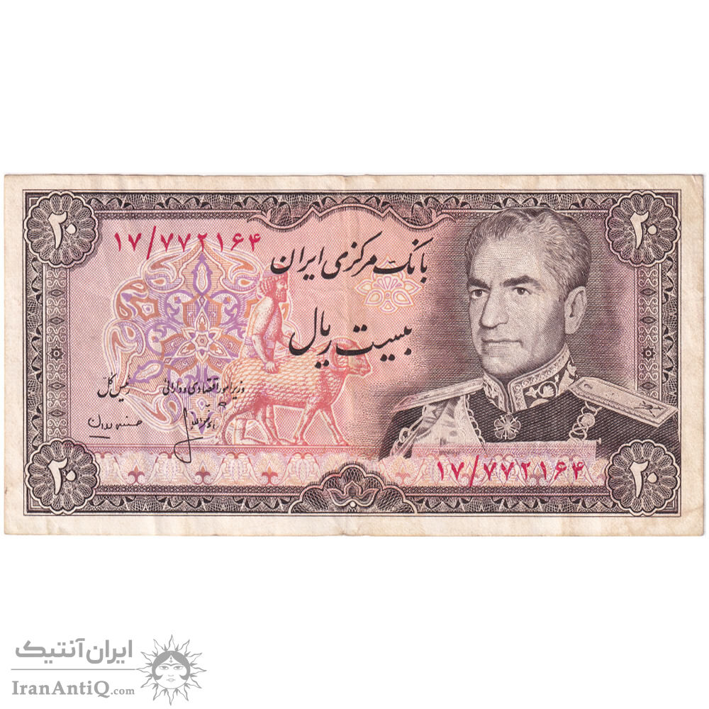 اسکناس 20 ریال (انصاری - مهران) ریال بسته - تک - EF40 - محمد رضا شاه