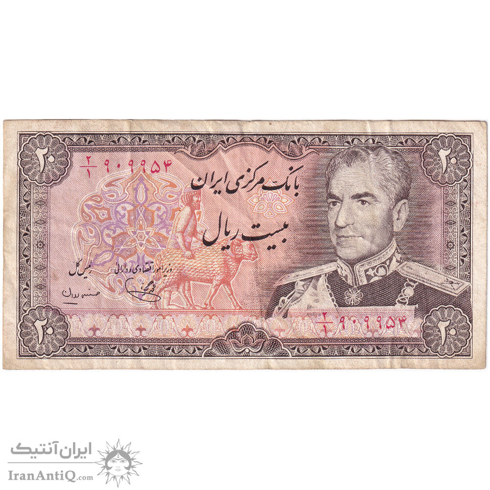 mohammad reza shah 20 rials (yegane - mehran) iran banknote - VF35