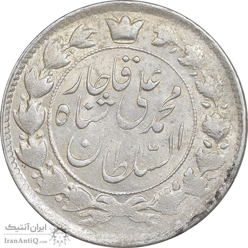 سکه 2 قران 1327 - قران بدون نقطه - AU55 - محمد علی شاه