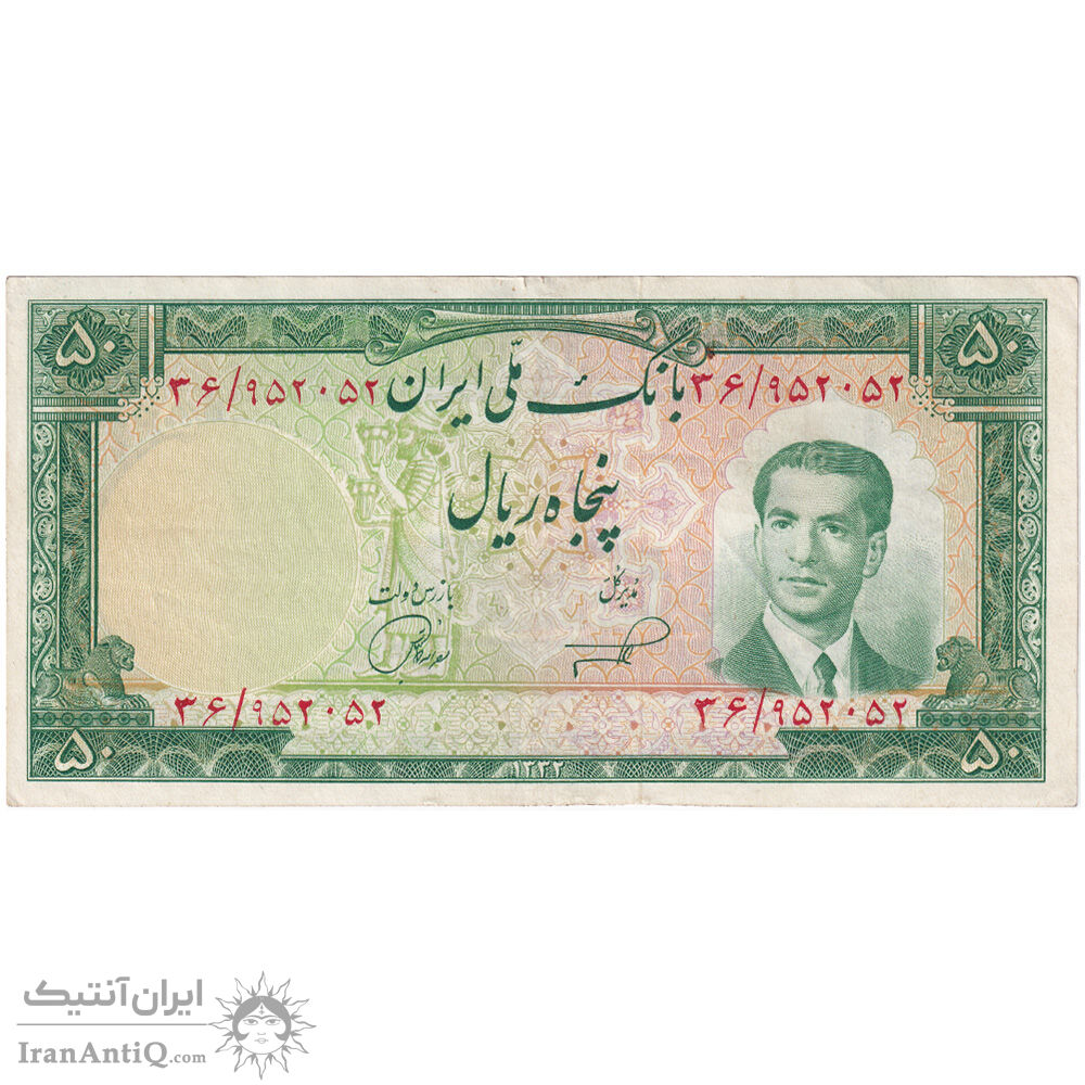 mohammad reza shah 50 rials 1332 iran banknote - EF45