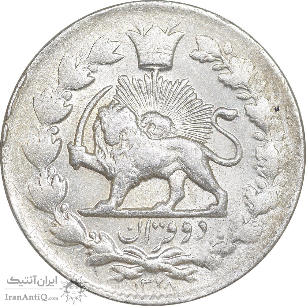 iran 2 krans 1328 coin - AU55 - ahmad shah