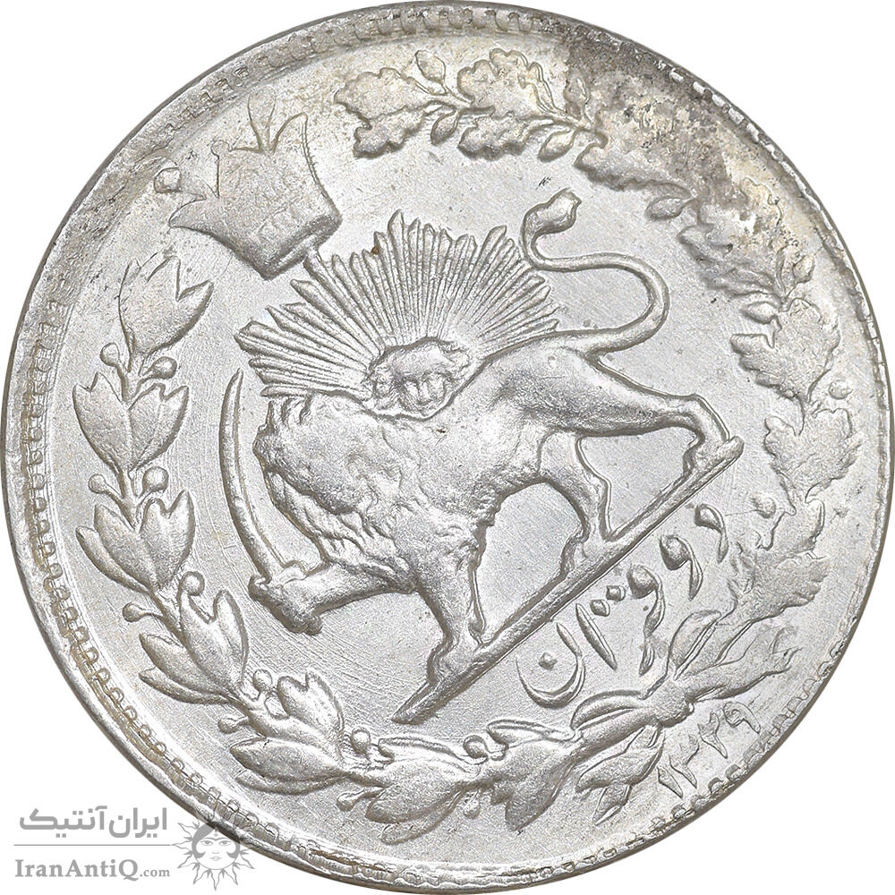 iran 2 krans 1329 coin - rotate 45 degree - MS61 - ahmad shah