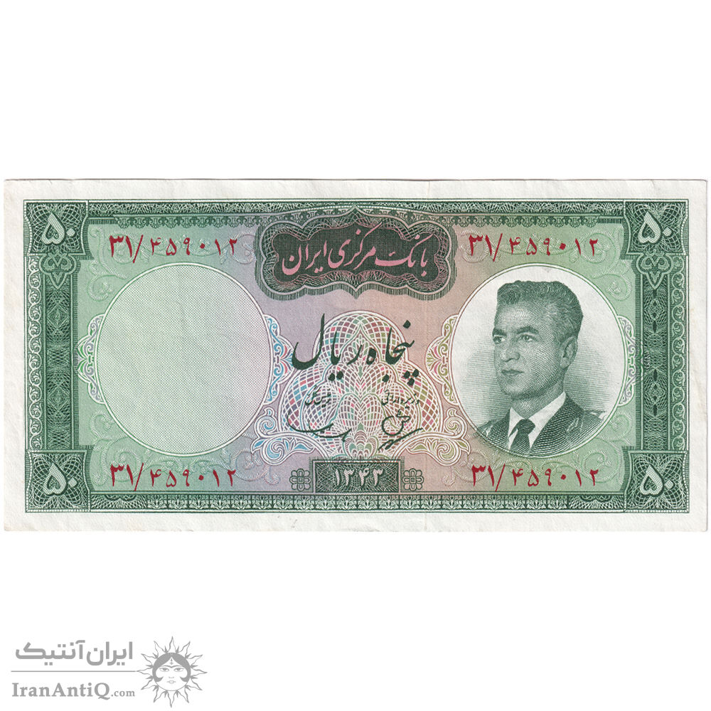 اسکناس 50 ریال 1343 - تک - AU50 - محمد رضا شاه