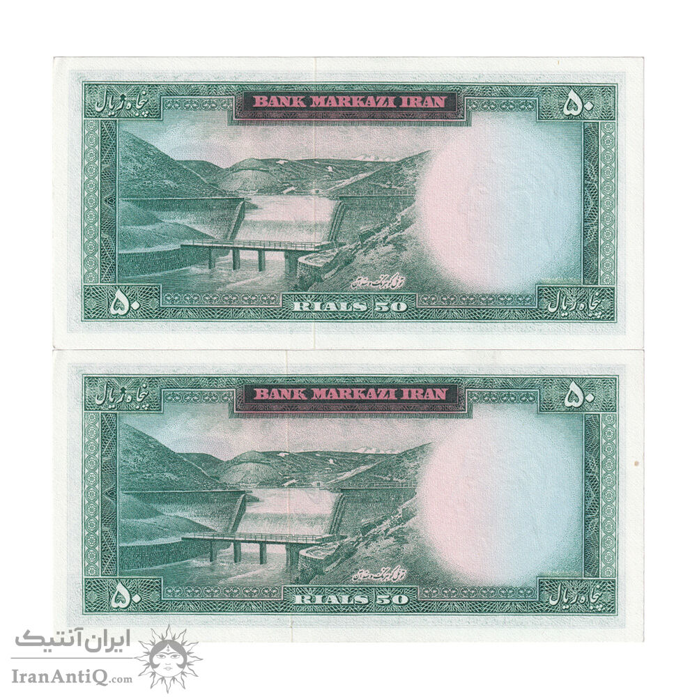 اسکناس 50 ریال (آموزگار - سمیعی) - جفت - UNC62 - محمد رضا شاه