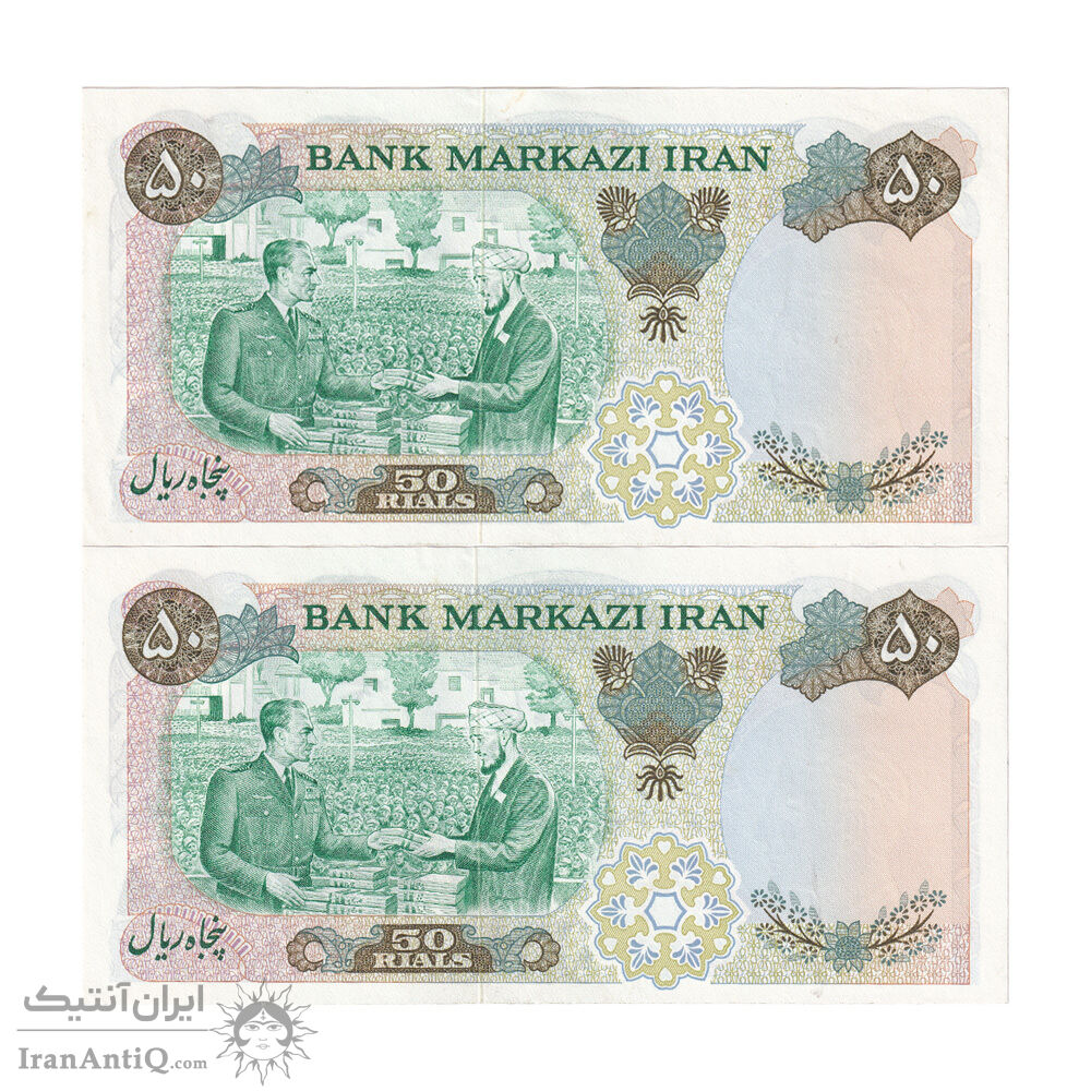 اسکناس 50 ریال 1350 (آموزگار - سمیعی) - جفت - UNC61 - محمد رضا شاه