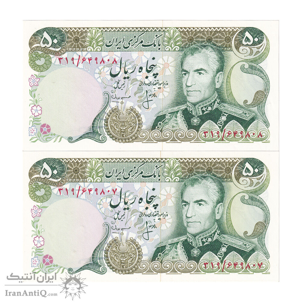 اسکناس 50 ریال (انصاری - مهران) - جفت - UNC62 - محمد رضا شاه