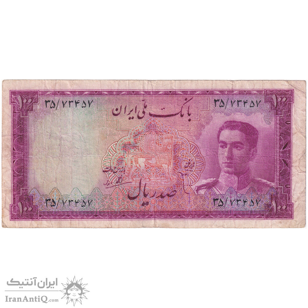 اسکناس 100 ریال سری سوم - تک - VF20 - محمد رضا شاه