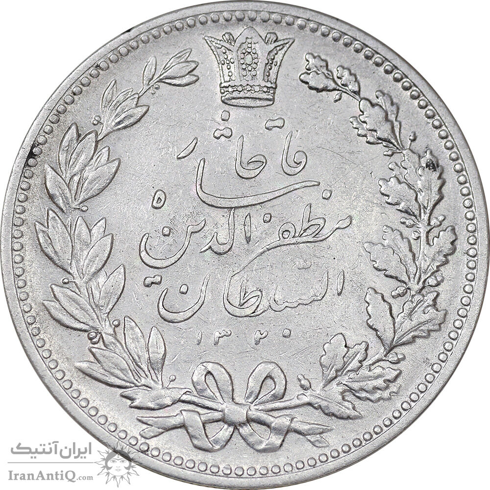 سکه 5000 دینار 1320 خطی - EF40 - مظفرالدین شاه