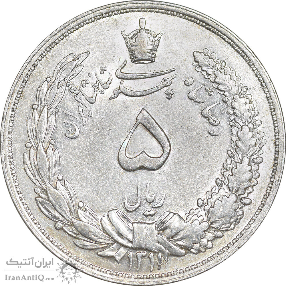 Iran 5 rials 1311 coin - AU58 - reza Shah pahlavi