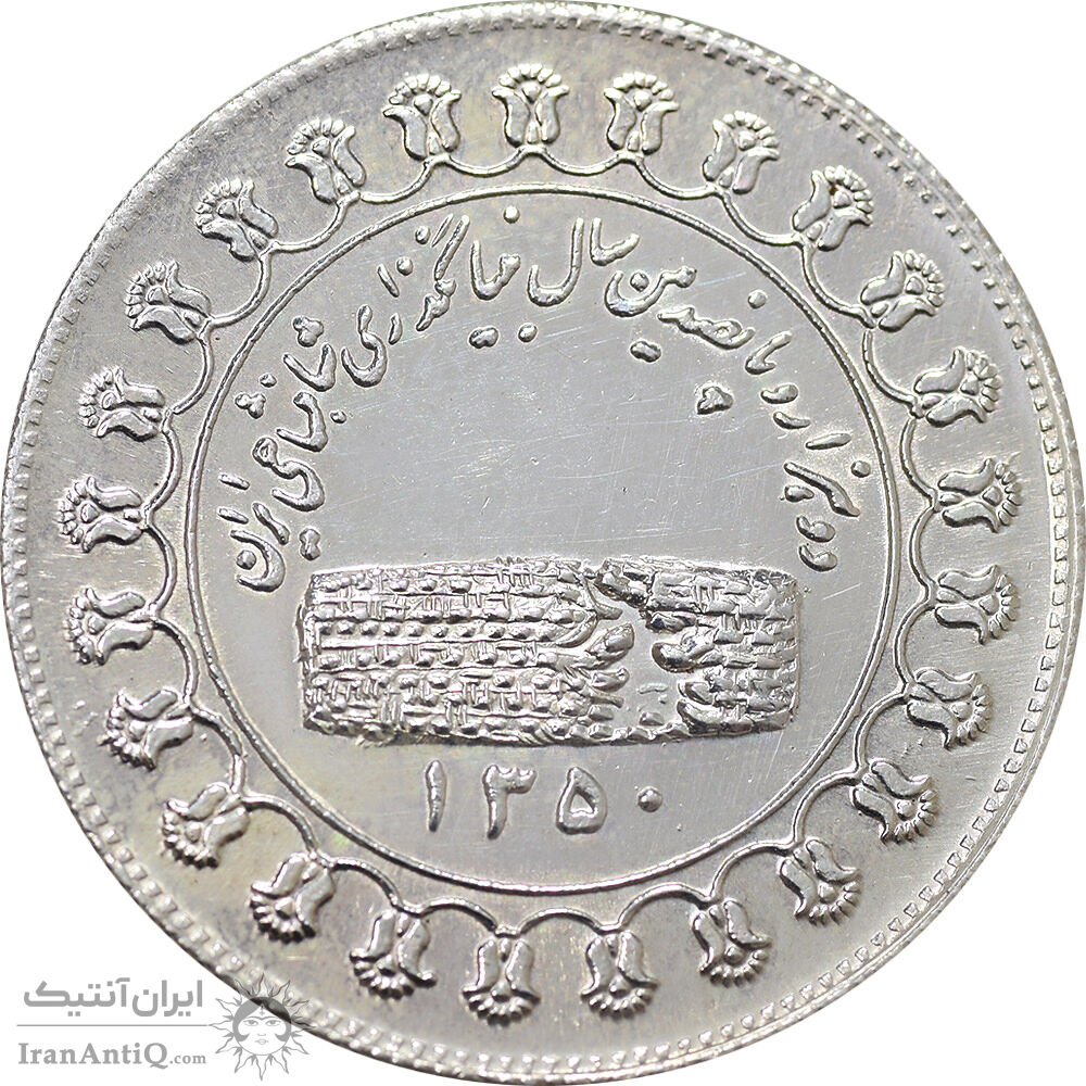 مدال نقره منشور کوروش بزرگ 1350 - cleaned - AU - محمد رضا شاه