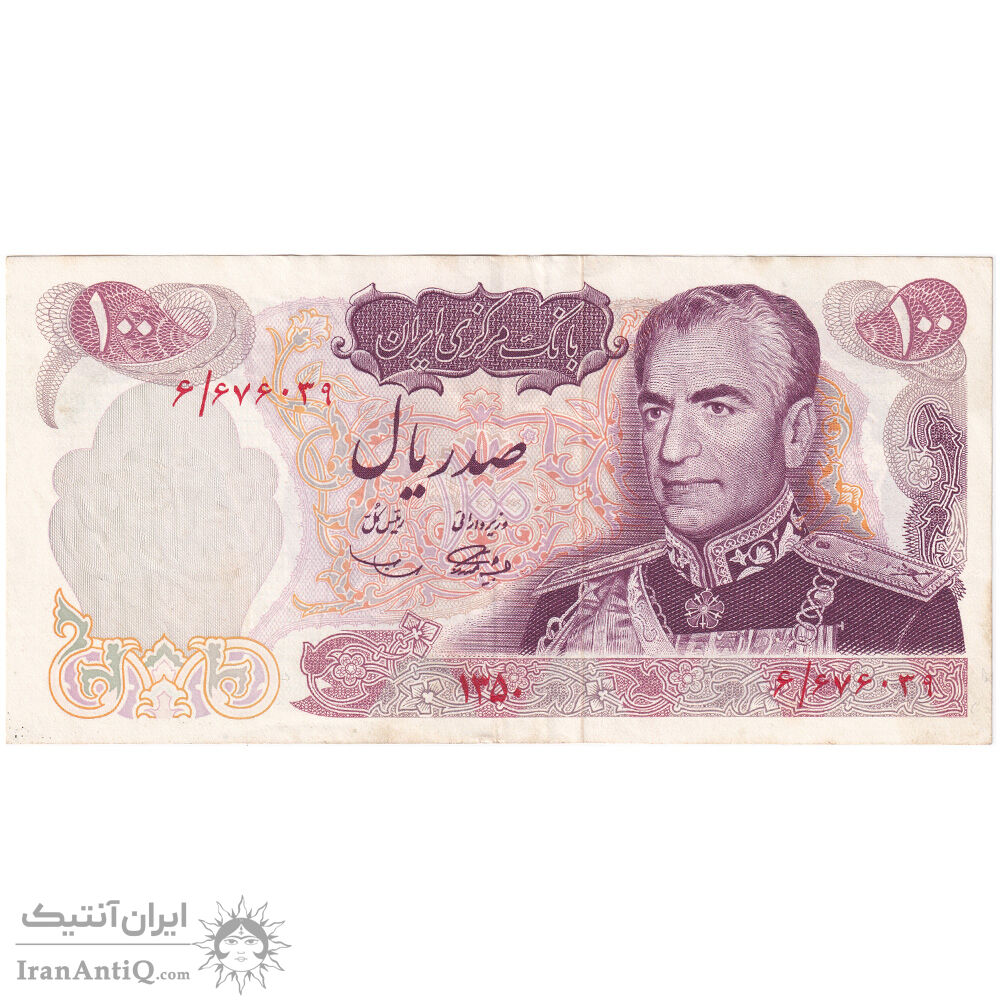 اسکناس 100 ریال 1350 - تک - AU53 - محمد رضا شاه