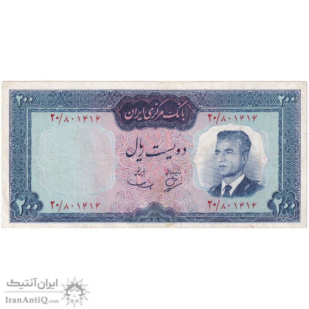 mohammad reza shah 200 rials (behnia - samiee) iran banknote - EF40