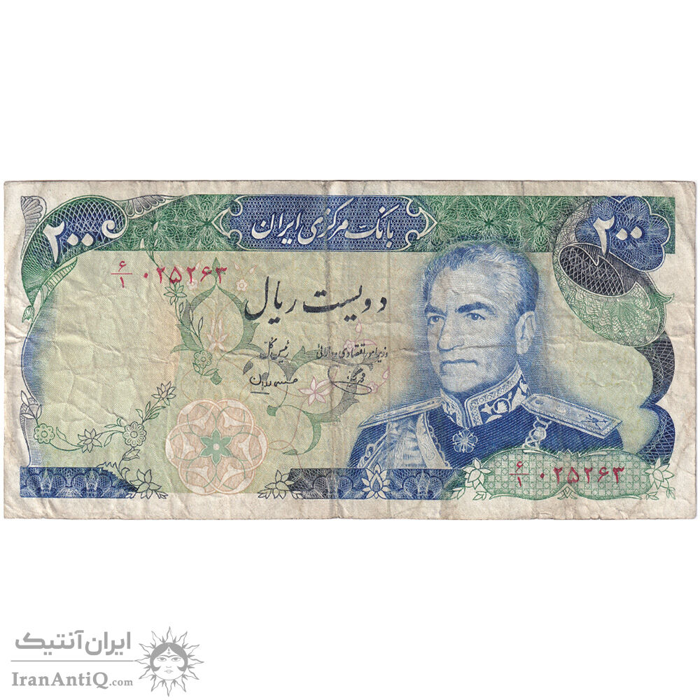 اسکناس 200 ریال (یگانه - مهران) - تک - VF30 - محمد رضا شاه