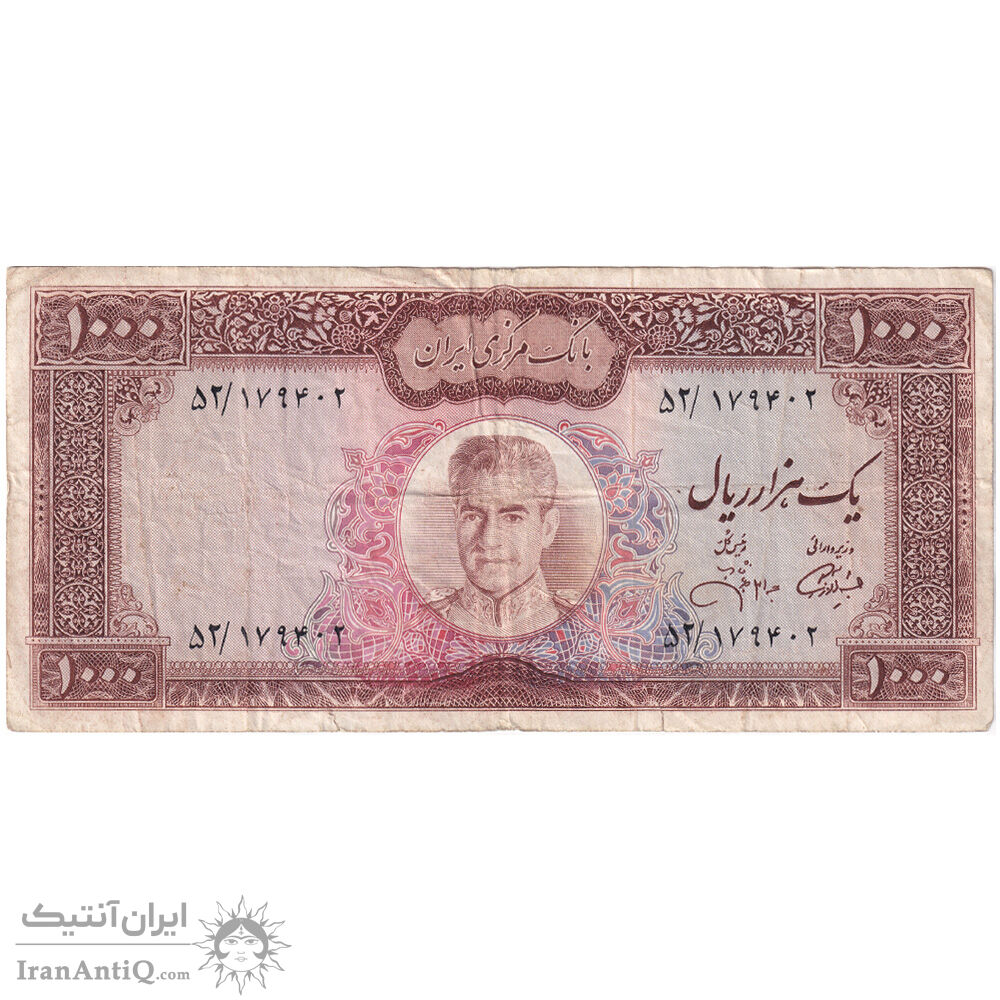 mohammad reza shah 1000 rials (amuzegar - jahanshai) iran banknote - VF30