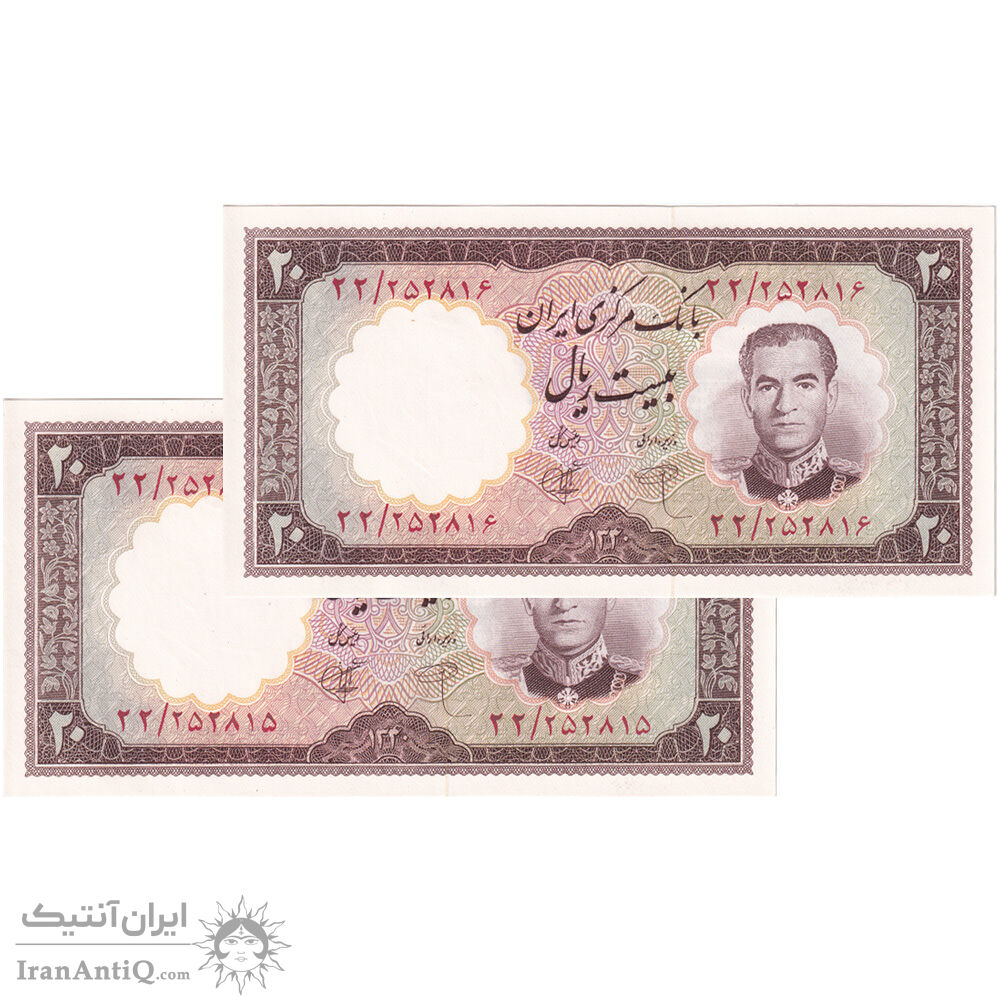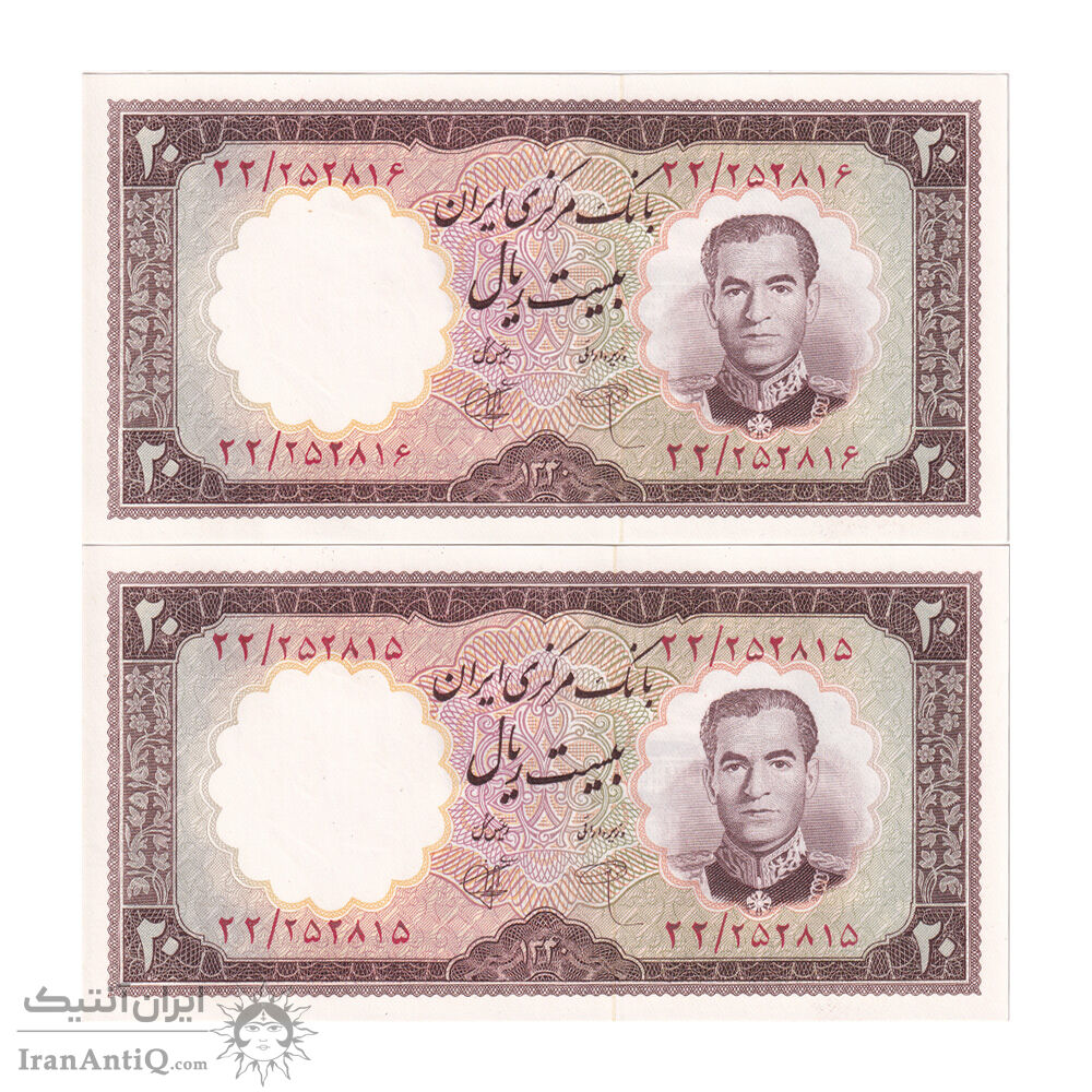 اسکناس 20 ریال 1340 - جفت - UNC63 - محمد رضا شاه