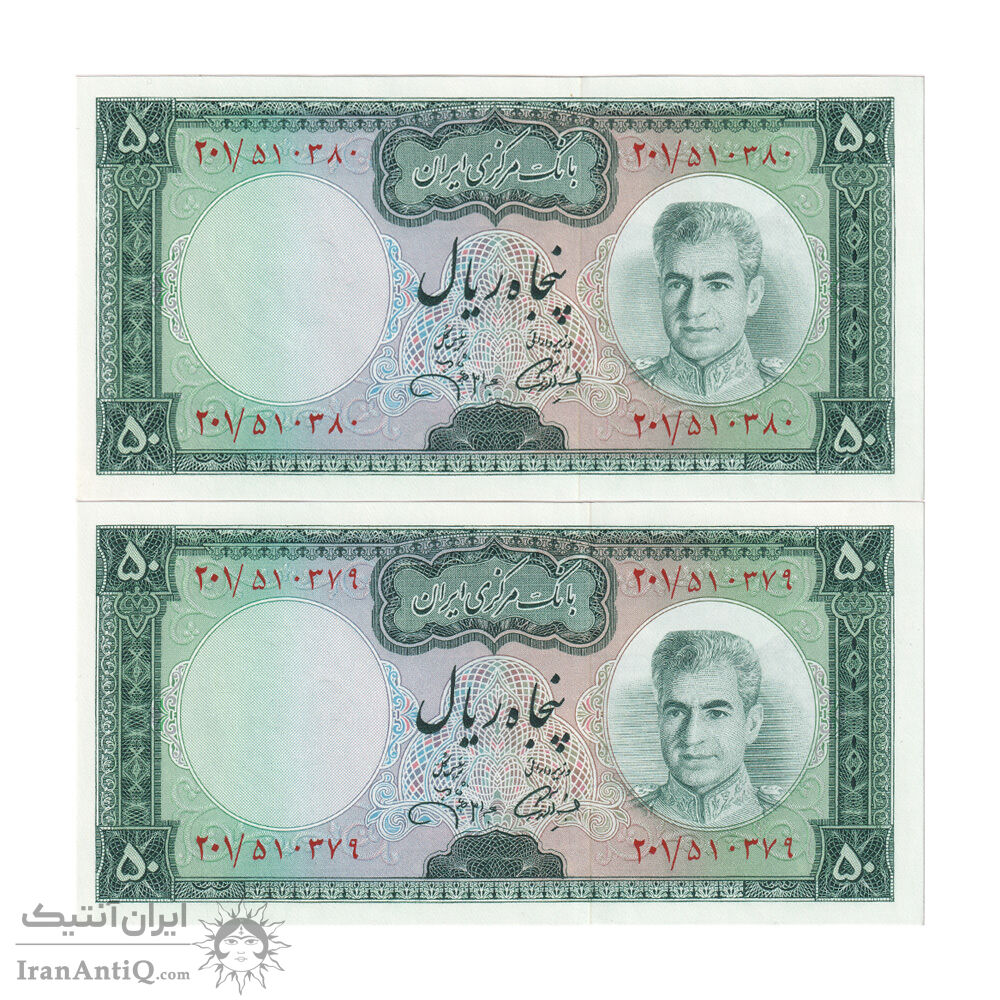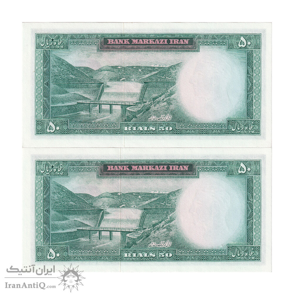 اسکناس 50 ریال (آموزگار - جهانشاهی) - جفت - UNC64 - محمد رضا شاه