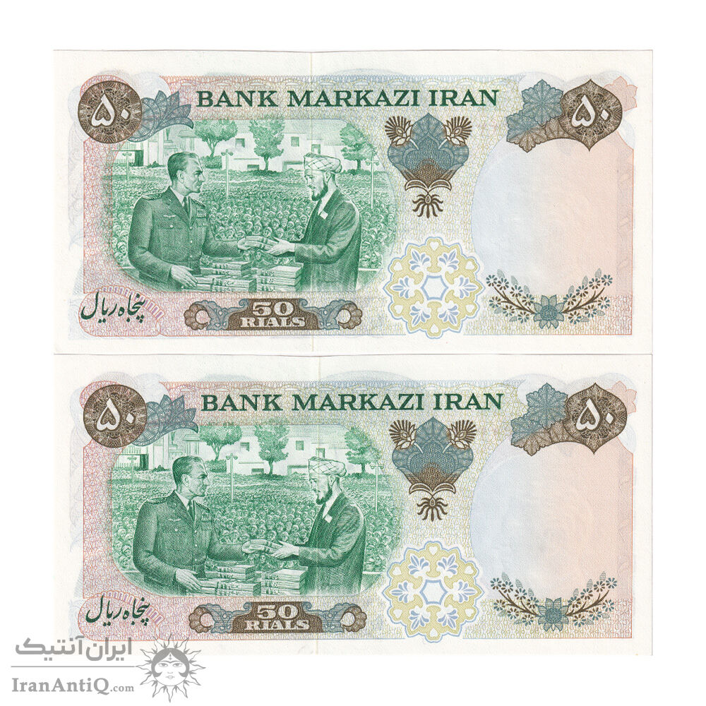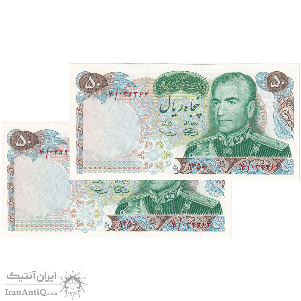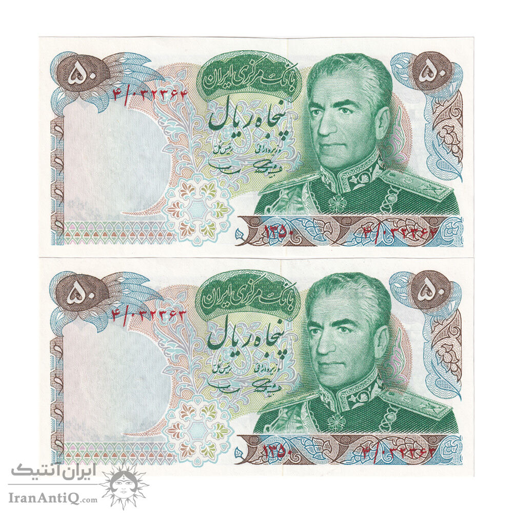 اسکناس 50 ریال 1350 (آموزگار - سمیعی) - جفت - UNC62 - محمد رضا شاه