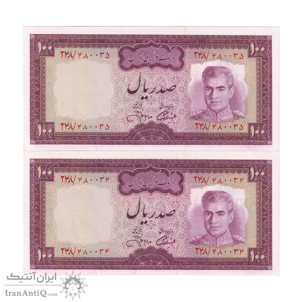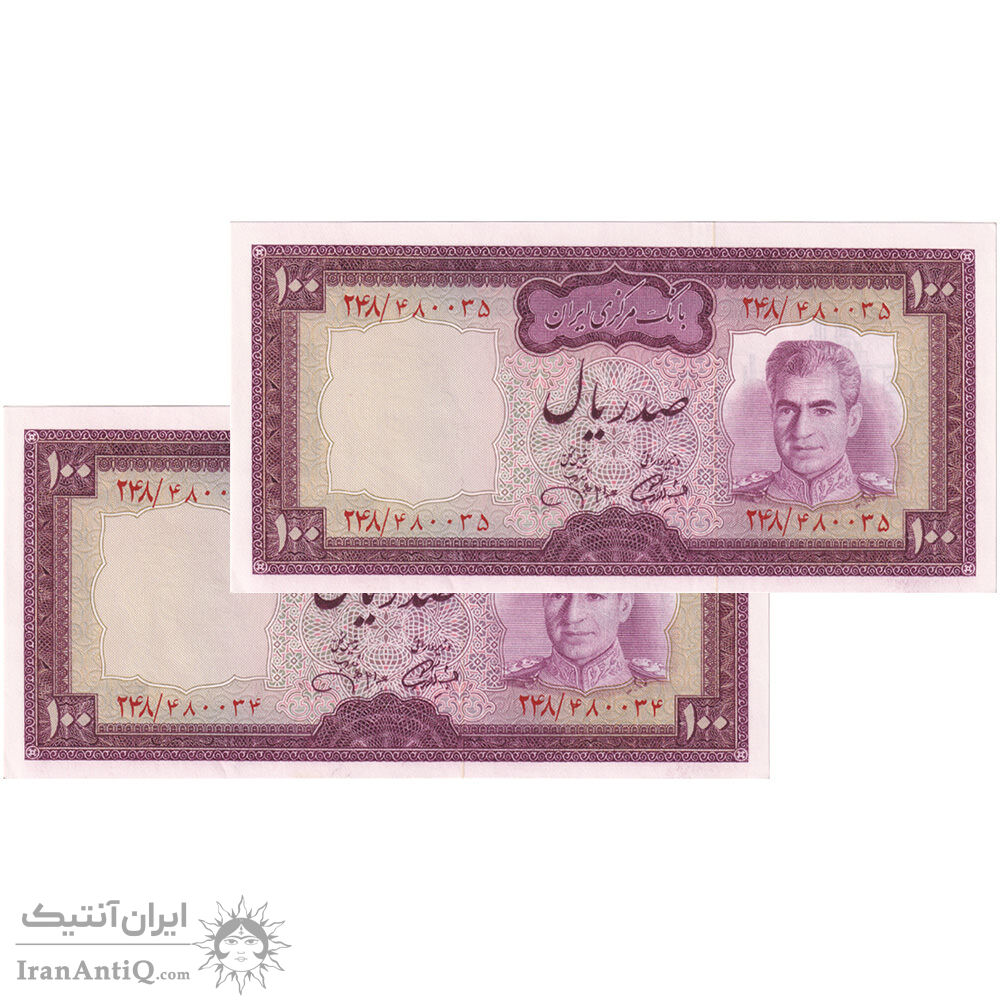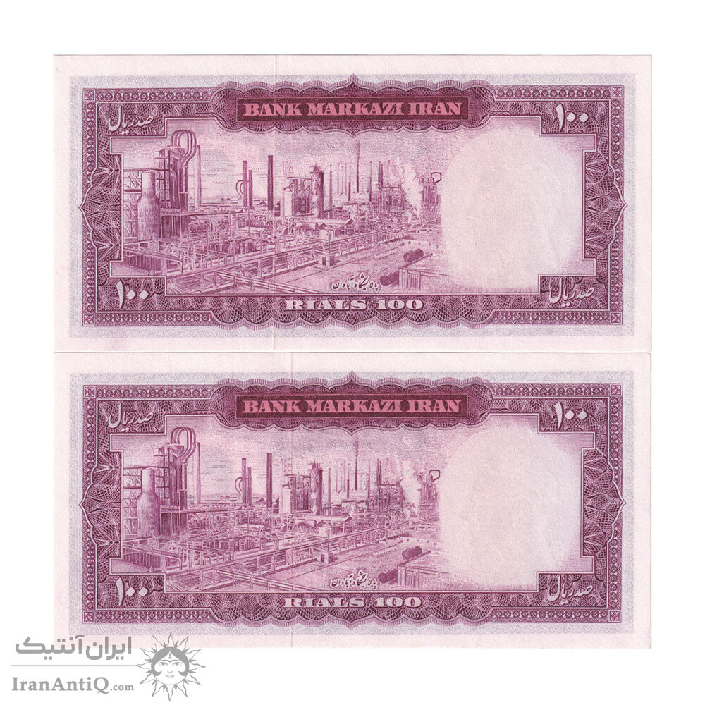 اسکناس 100 ریال (آموزگار - جهانشاهی) - جفت - UNC62 - محمد رضا شاه