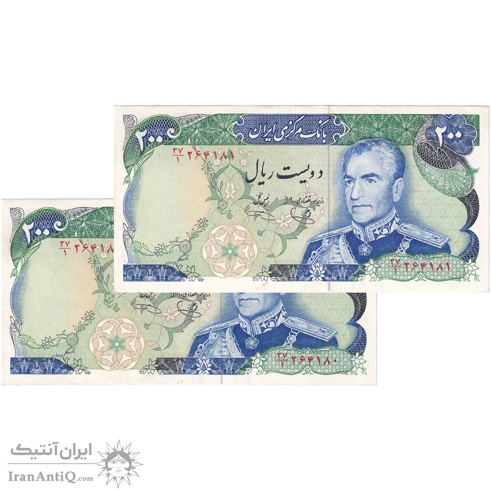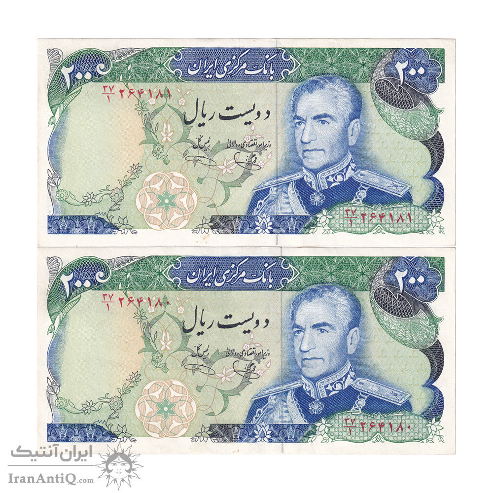 اسکناس 200 ریال (یگانه - خوش کیش) - جفت - AU55 - محمد رضا شاه