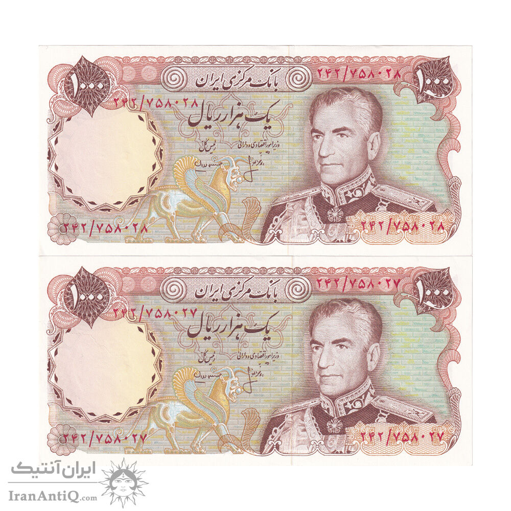 اسکناس 1000 ریال (انصاری - مهران) - جفت - UNC62 - محمد رضا شاه
