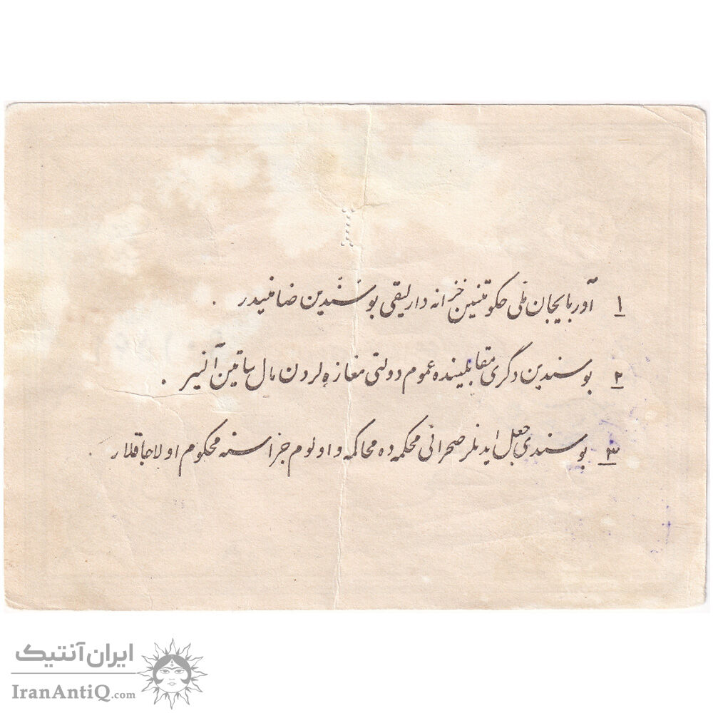 • خزانه داری حکومت ملی آذربایجان این سند را تضمین میکند