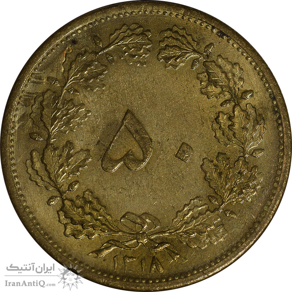 سکه 50 دینار 1318 برنز - MS61 - رضا شاه