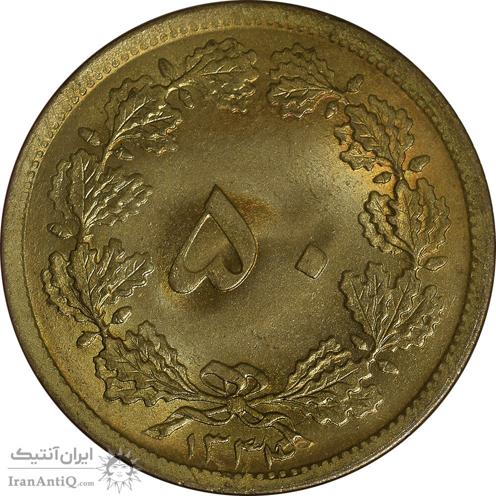 سکه 50 دینار 1334 برنز - MS64 - محمد رضا شاه
