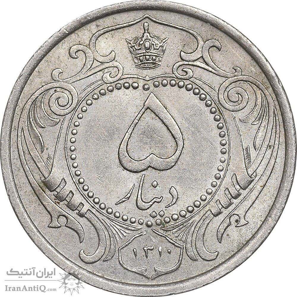 سکه 5 دینار 1310 نیکل - MS61 - رضا شاه