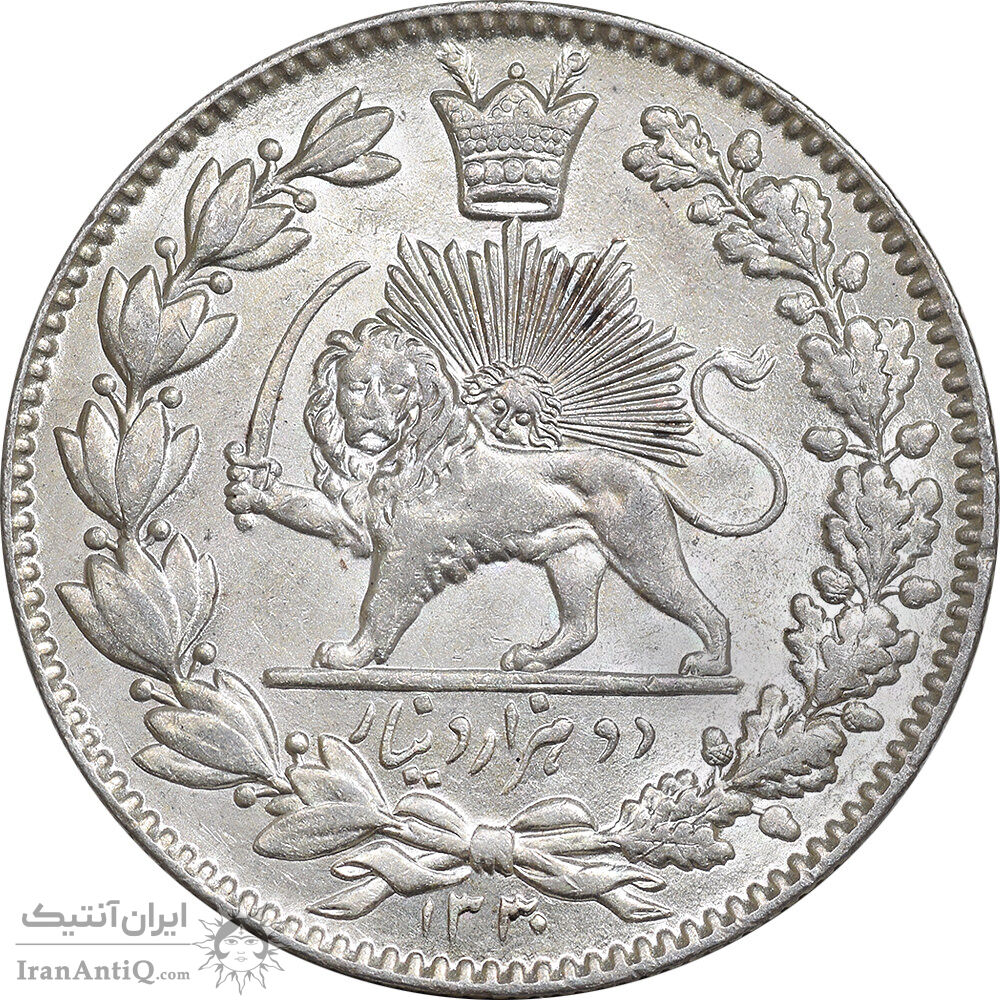 سکه 2000 دینار 1330 خطی (شیر متفاوت) - MS62 - احمد شاه