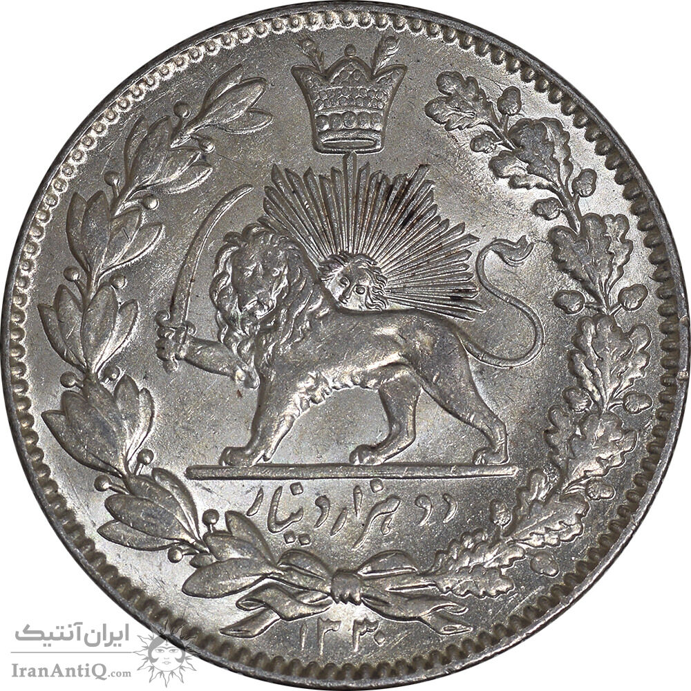 iran 2000 dinars 1330 coin (variety lion) - MS62 - ahmad shah
